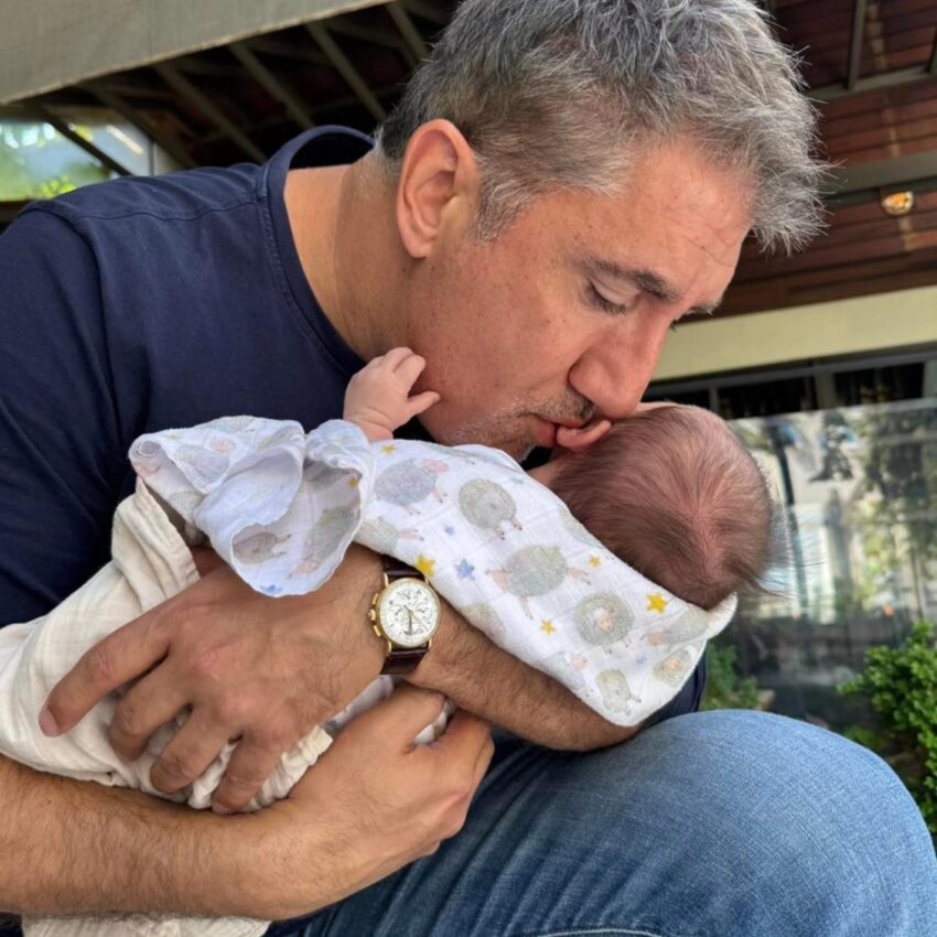 „Да държа в ръцете си тази малка душичка е най-голямото щастие“, споделя 50-годишният актьор, който видимо не крие гордостта си.