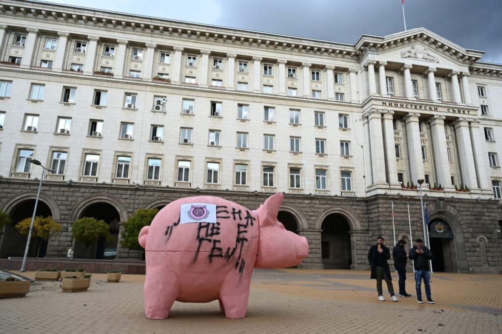 Сутринта от ПП монтираха пред Партийния дом огромно розово прасе – касичка, което символизира алчността и лакомията на Пеевски, претворени в бюджета на грабежа за следващата година.