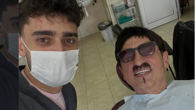 Милко Калайджиев седна на зъболекарския стол при сина си Александър Калайджиев, за да го подкрепи в обучението му.