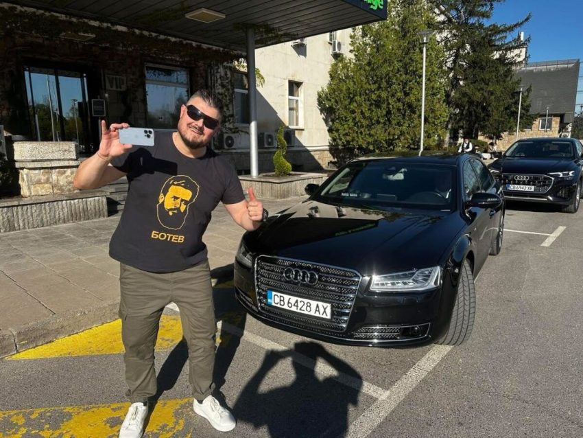 На снимката съм аз пред бронираното АУДИ на Пеевски, с което НСО го вози. Като ме видяха, цялото НСО избяга и се скри във ВИП-а на летището с пристигналия от самолета на Валтер Папазки Пеевски и оставиха двете коли безпризорни отвън с един треперещ шофьор в тях.