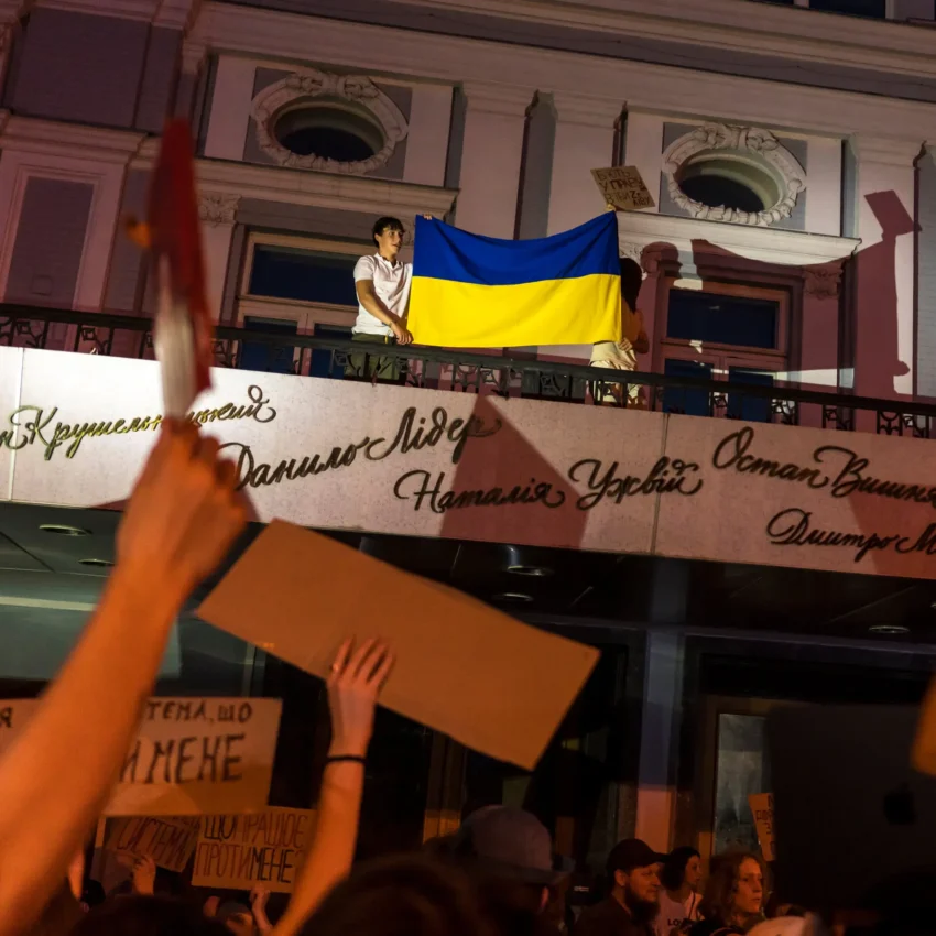 „Антикорупционните политики на Владимир Зеленски вече предизвикаха първите антиправителствени протести в Украйна <…> Сега изглежда, че те биха могли да струват на страната част от чуждестранната ѝ помощ от Европейския съюз, което е ясен укор от блока, който някога беше верен съюзник. Европейският съюз заяви в петък, че ще задържи 1,5 милиарда евро, или 1,7 милиарда долара, от фонд от 4,5 милиарда евро помощ, която е обвързана с постигането на стандарти за добро управление и не може да се използва за военни покупки. Зеленски не е направил публичен коментар относно съкращенията на помощта, които въпреки това представляват неуспех за украинския лидер, който разчита на европейска финансова подкрепа, за да запълни празнините, оставени от отказа на администрацията на Тръмп да подкрепи военните усилия на Украйна.“
